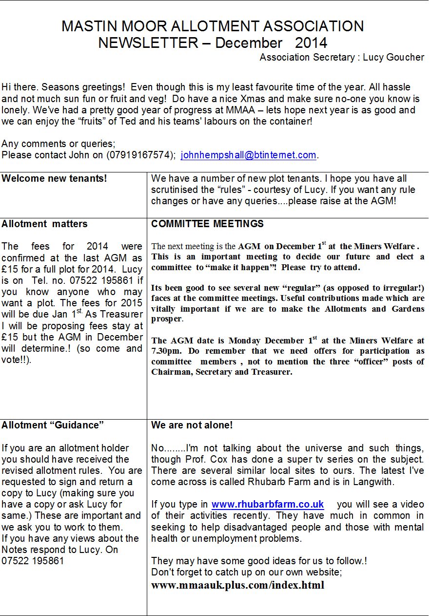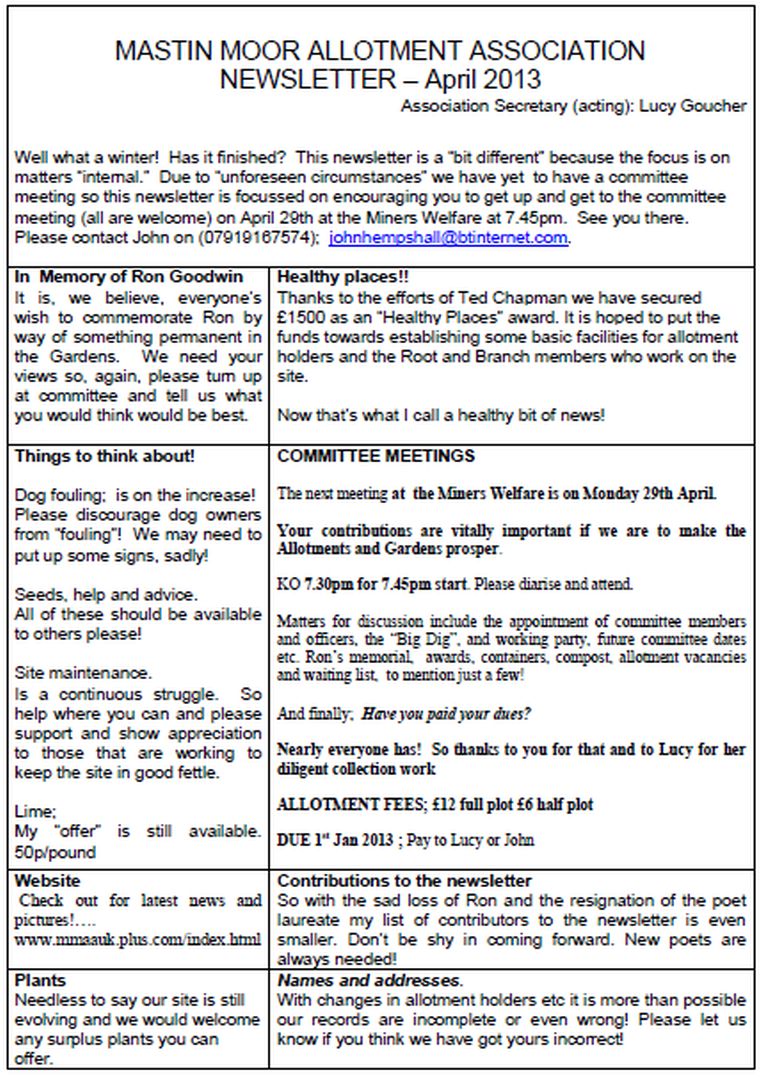 We have been granted Discretionary Rate Relief by the Borough Council once again. Although this involves us making a separate application each year, it is well worth the effort. Without this relief, we would need to find some £300 per year out of our own pockets for Compost Corner and that would be very difficult; the Committee already heavily subsidises the development of the Community Garden. Without Compost Corner, we would have no toilet or kitchen facilities and so could not benefit from either the visits of the adults with learning disabilities or the Community Payback Teams. So, thank you Chesterfield Borough Council!